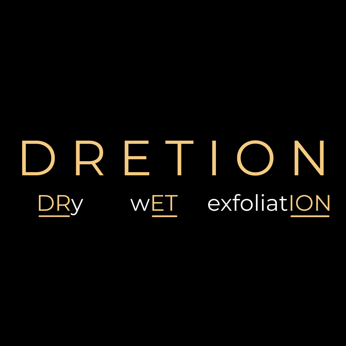 The name Dretion blends the words dry, wet, and exfoliation — designed to exfoliate on either dry or wet skin, and built for flexibility in your routine without compromising results.